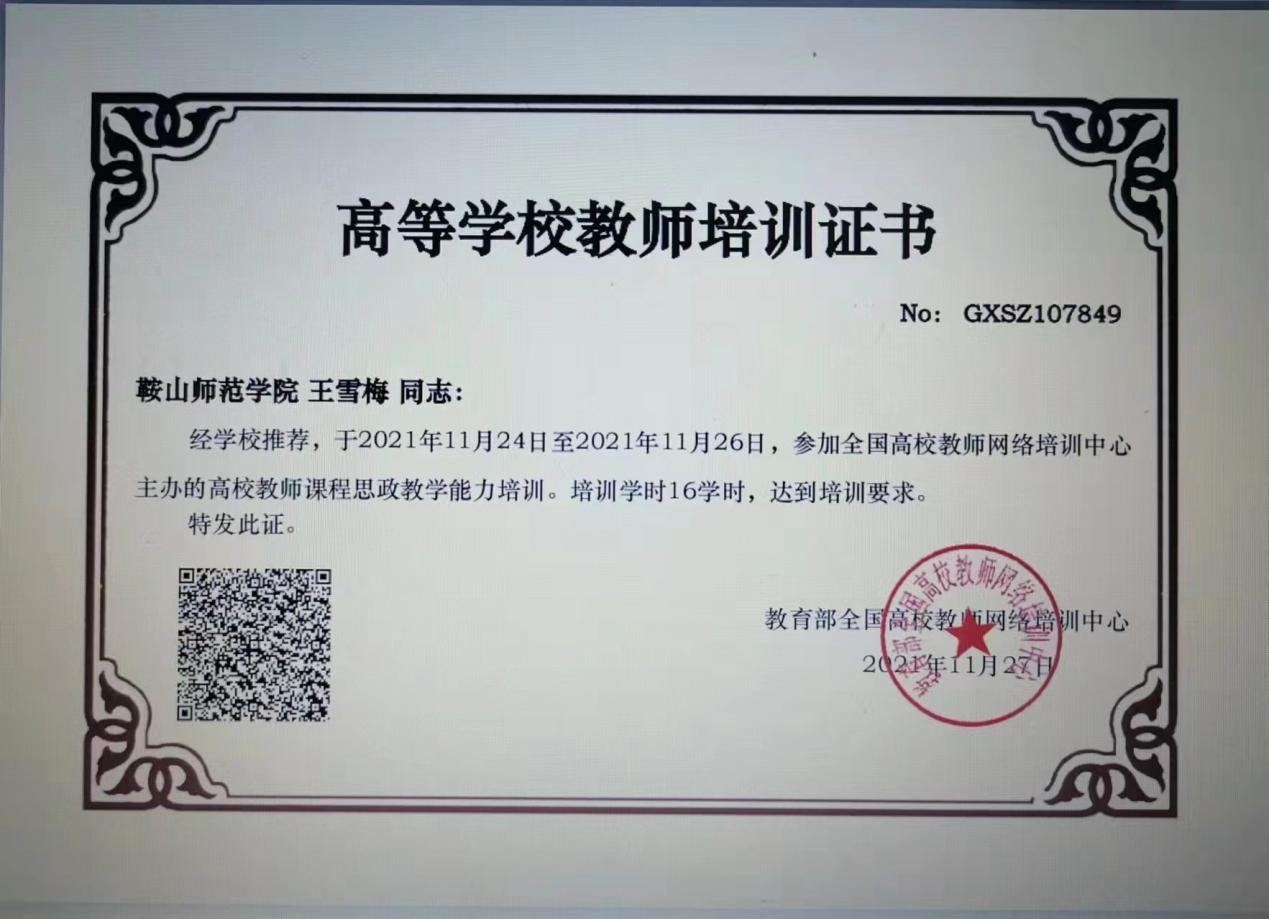 (五)2021年11月24日至2021年11月26日参加全国高校教师网络培训中心主办的高校教师课程思政教学能力培训