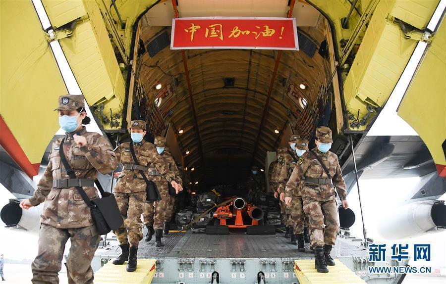 2月2日,空军出动8架大型运输机空运军队支援湖北医疗队抵达武汉天河机场。 新华社记者 程敏 摄