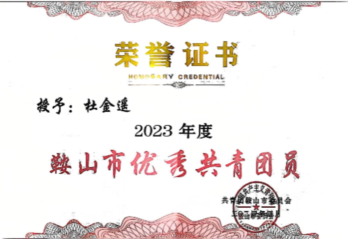 她信仰坚定,积极学习理论知识,不断的更新自己的思想道德观念,对党的学习也不断激励着她对于中国共青团的认识和深入理解,作为2023年度鞍山市优秀共青团员,杜金遥在理论学习中交出硬核成绩单:连续3年参与校青马工程培训,组织6场红色主题团日活动,带领班级获评"活力团支部"。2024年5月完成从共青团员到中共预备党员的蜕变,在"党员先锋岗"累计服务时长超200小时。