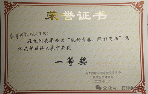 5月的花样跳绳比赛中,教科学子以饱满的热情、自信与活力,在赛场上展现了教科院的独特风采。随着欢快的音乐响起,绳子在空中划出优美的弧线,他们的动作协调一致,每一次的起跳和落地都精准无误,展现出了同学们扎实的跳绳技巧和出色的团队合作精神。在激烈的角逐中,教科队伍凭借出色的表现脱颖而出,最终摘得冠军荣誉。