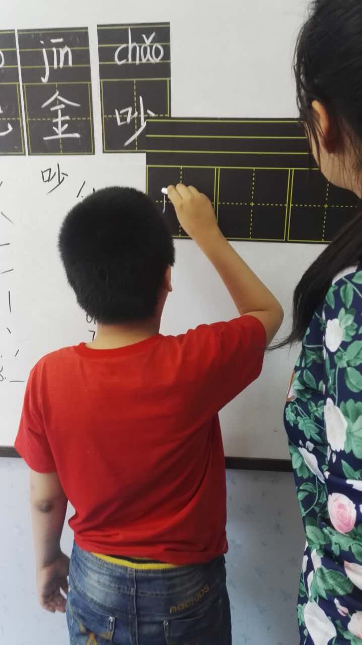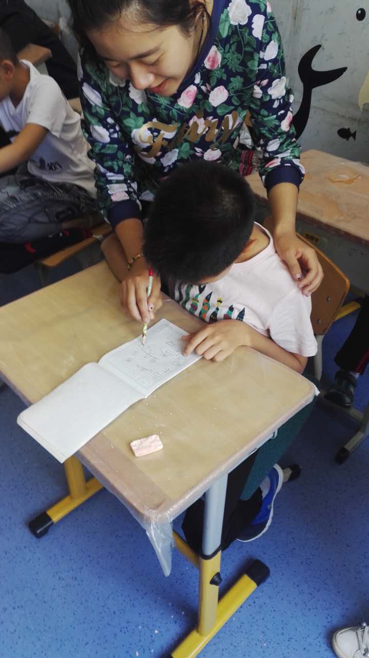 上午十点,志愿者准时来到康复中心开始进行书法课的教学。志愿者根据班型不同以及之前几次课程的教学进度分别授课。志愿者们一边教如何书写,一边教如何发音,对于课程吸收较慢的学生也十分有耐心。教科学子始终相信,只要肯坚持一定能教会孩子们如何写自己的名字。希望通过书法课的教学,能使得孩子们逐渐学会如何书写汉字。在课程目标在不断地完善的情况下,孩子们的家长也十分配合,并对教科学子的辛勤劳动给予了极大的肯定与鼓励。