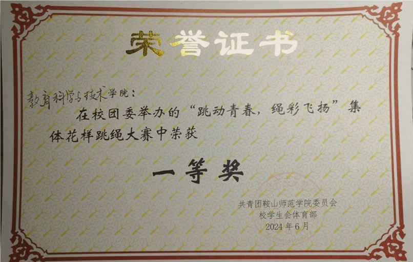 5月的花样跳绳比赛中,教科学子以饱满的热情、自信与活力,在赛场上展现了教科院的独特风采。随着欢快的音乐响起,绳子在空中划出优美的弧线,他们的动作协调一致,每一次的起跳和落地都精准无误,展现出了同学们扎实的跳绳技巧和出色的团队合作精神。在激烈的角逐中,教科队伍凭借出色的表现脱颖而出,最终摘得冠军荣誉。