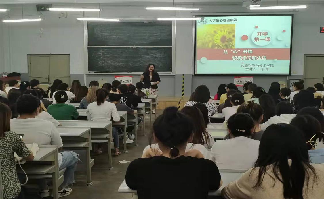 2021年9月10日下午,教育科学与技术学院应用心理学系教授陈卓老师为同学们讲授开学第一堂心理课,陈卓老师提出积极学习和生活,从“心”开始。让心理课堂“活”起来,培育学生积极心理品质,引导学生树立健康理念,掌握应对学业、情感、人际关系等方面心理压力的调节方法,提高心理适应能力。