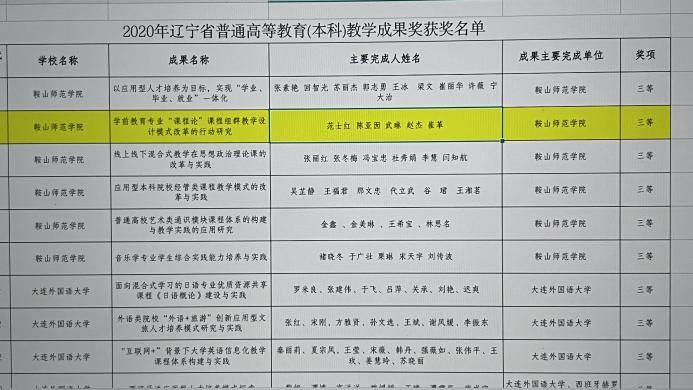 6.在2020年辽宁省普通高等教育(本科)教学成果奖荣获三等奖。