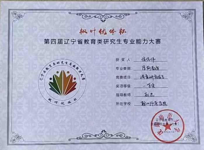 4.在2022年指导学生于枫叶优体杯第四届辽宁省教育类研究生专业能力大赛荣获二等奖。