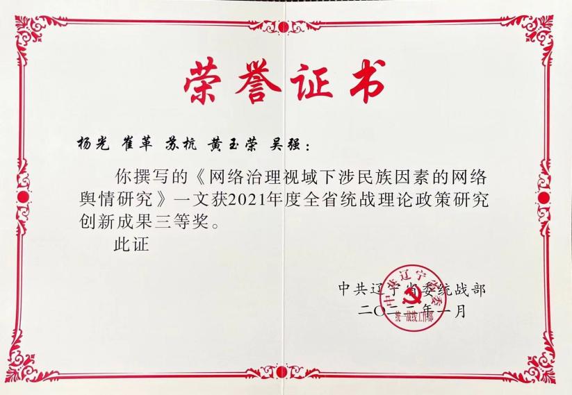 1.在2022年通过辽宁省统战理论研究2021年重点课题。